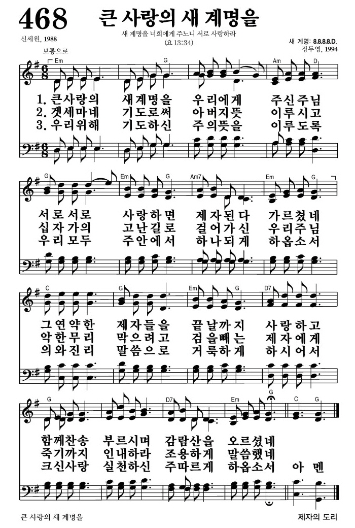 큰 사랑의 새 계명을 우리에게 주신 주님
